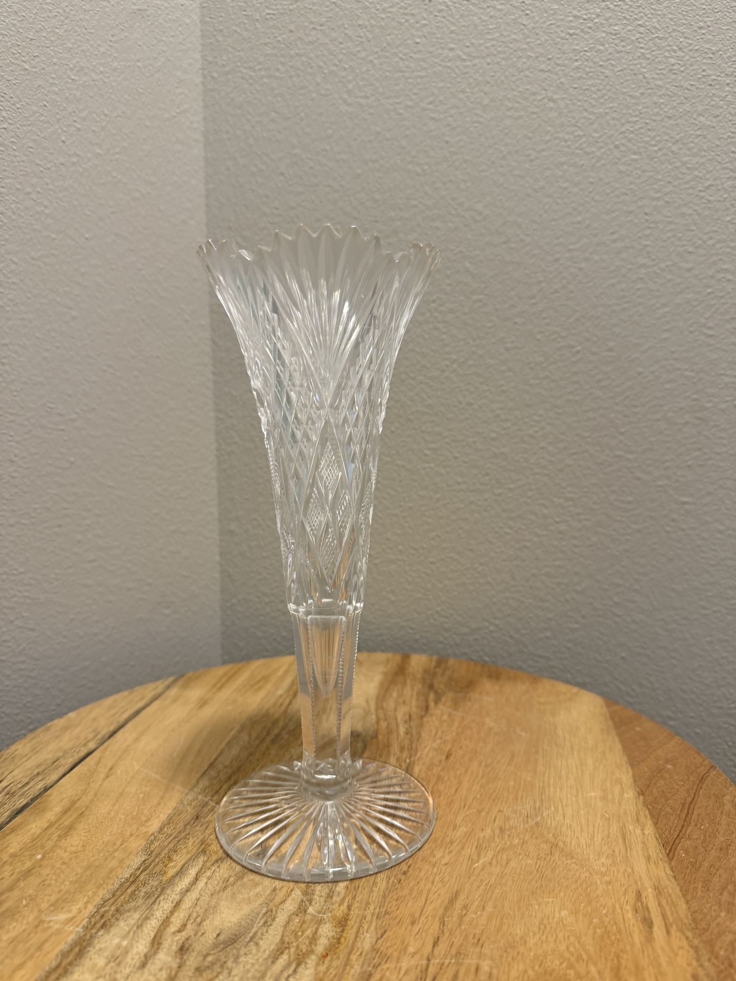 10” Trumpet Vase Heavy Brilliant Cut Glass Beautiful Centerpiece