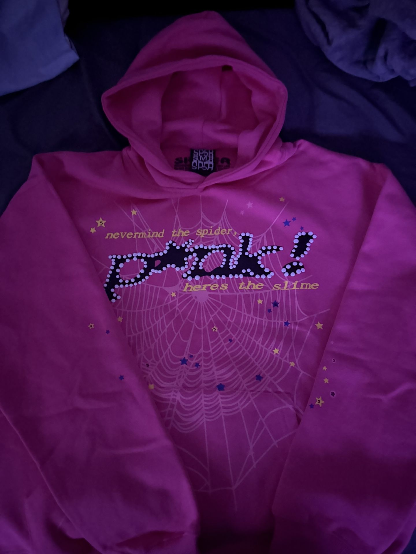 The Spider Worldwide Sp5der P*NK V1 Hoodie in Pink, size Medium, is a stylish and comfortable pullover sweater perfect for winter and fall seasons. Made from cozy fleece fabric, this hoodie features a round neckline, hooded accents, and a graphic print of Spider-Man, adding a touch of hip hop theme to the design. Machine washable and made from cotton, this hoodie is versatile for all seasons and activities, especially suitable for walking. With a regular fit and a long sleeve length, this hoodie is a fashionable choice for men looking to stay warm and trendy.