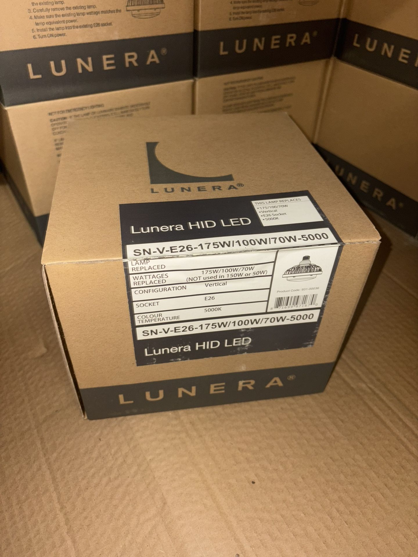 NEW Lunera HID LED Replacement Lamps Type: MH LED Medium Base E26 Socket Operates on Existing Metal Halide Ballast Temp: 5000 Degrees Model: SN-V-E26-175W/100W/70W-5000 New in original box. Multiple available