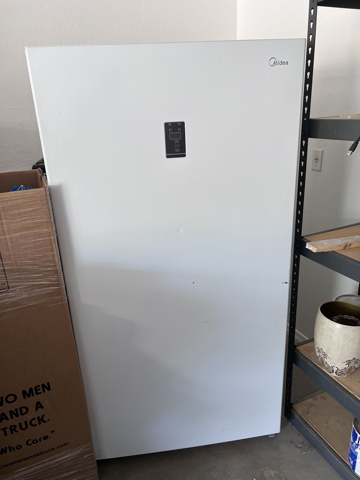 Selling a Midea Upright Freezer. Can also be converted to a refrigerator. It is 17cu. ft. Bought at Lowe’s. Model: MRU17F6AWW Selling for $380 OBO Need gone ASAP. Will need to be picked up if purchased.