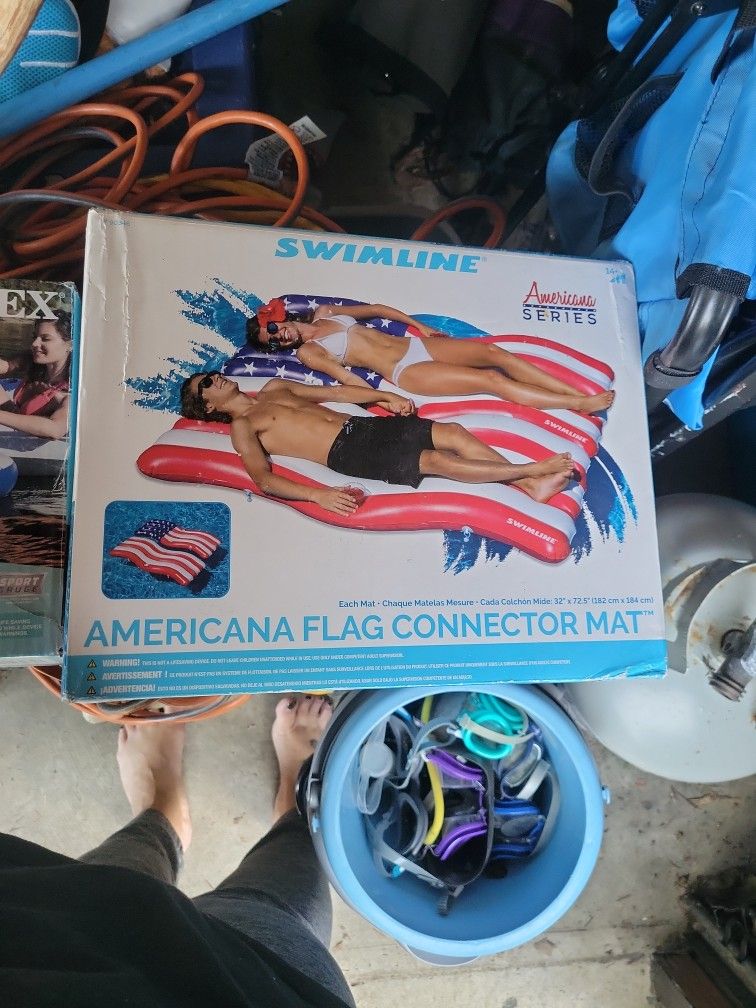 Set of 2 flag floating mats, use separate or connect. Also a new floating cooler
