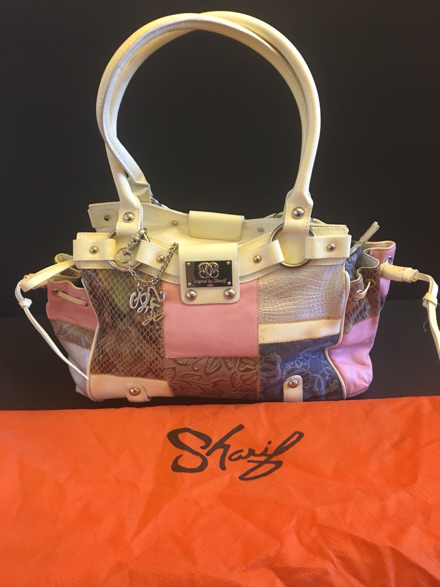 Gently used. This Purse has silver hardware and feet. It has 2 pockets on the sides of the exterior. The interior has 1 zipper pocket and 2 slip pockets. The is a zipper and magnet closure. Elegant and stylish Purse that is great for any occasion.