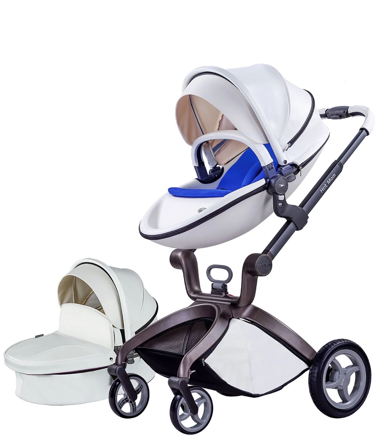 Hot Mom Baby Stroller with Adjustable Seat Height,Reversible Luxury Leather Travel System,White