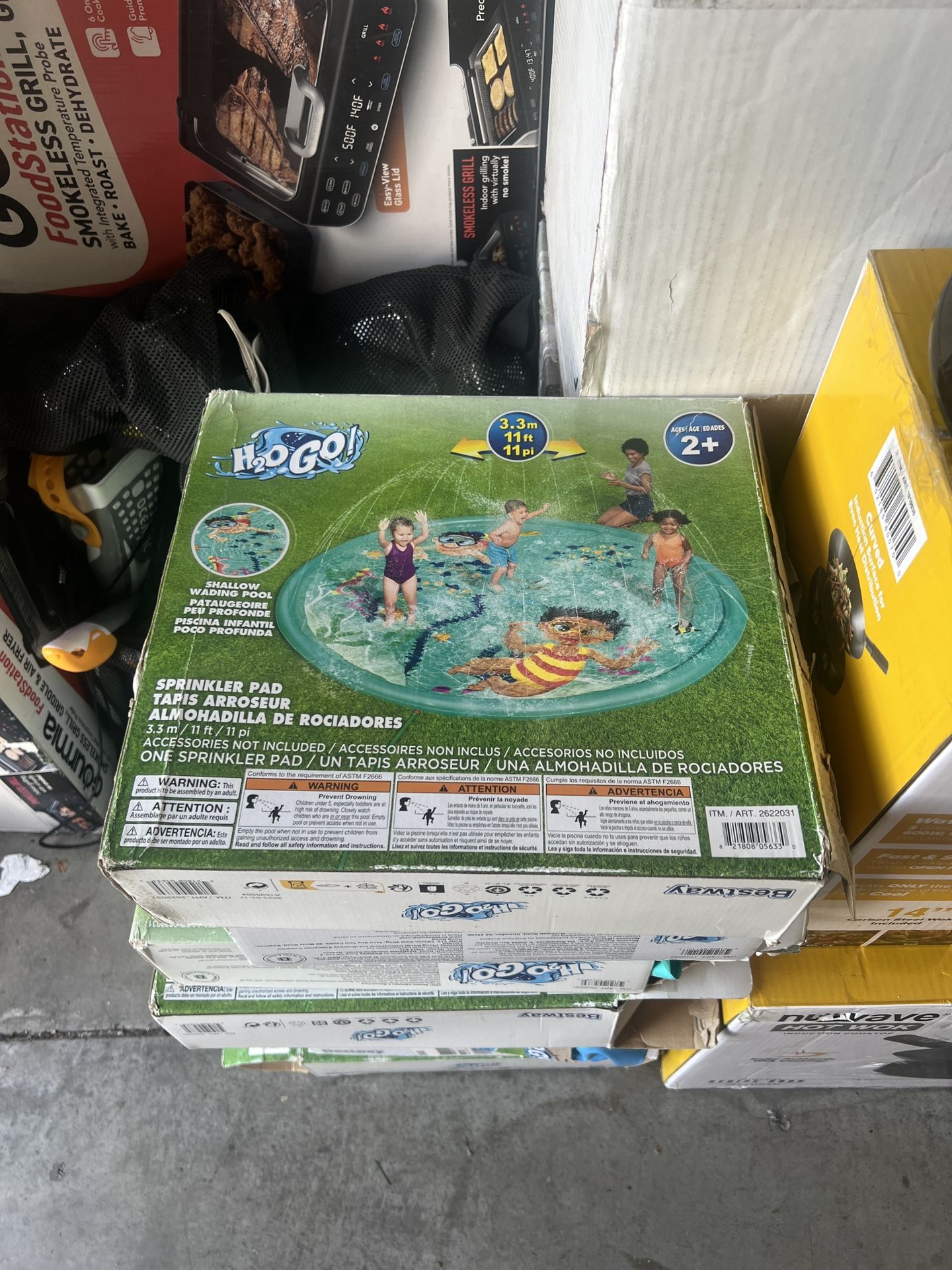 Used , Size: 10 Ft. Perfect for Kids Ages 2+ Friendly Ocean Themed Graphics Keep Cool by Splashing in the Shallow Wading Pool Gentle Cascading Water Sprayer Attaches to a Garden Hose for Quick, Easy Functional