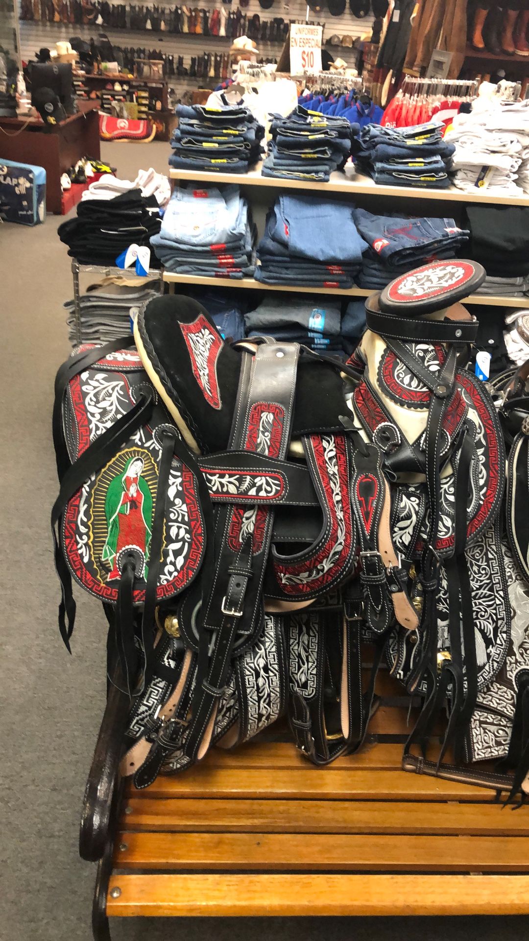 Hecha en México,100% piel súper bordada con preciosos diseños charros en toda la montura,con asiento forrado de cuero súper cómodo,el precio de la montura incluya la cabezada,las correas para las espuelas,el cincho y la pechera,lista para recoger o entregar,tenemos delivery disponible.