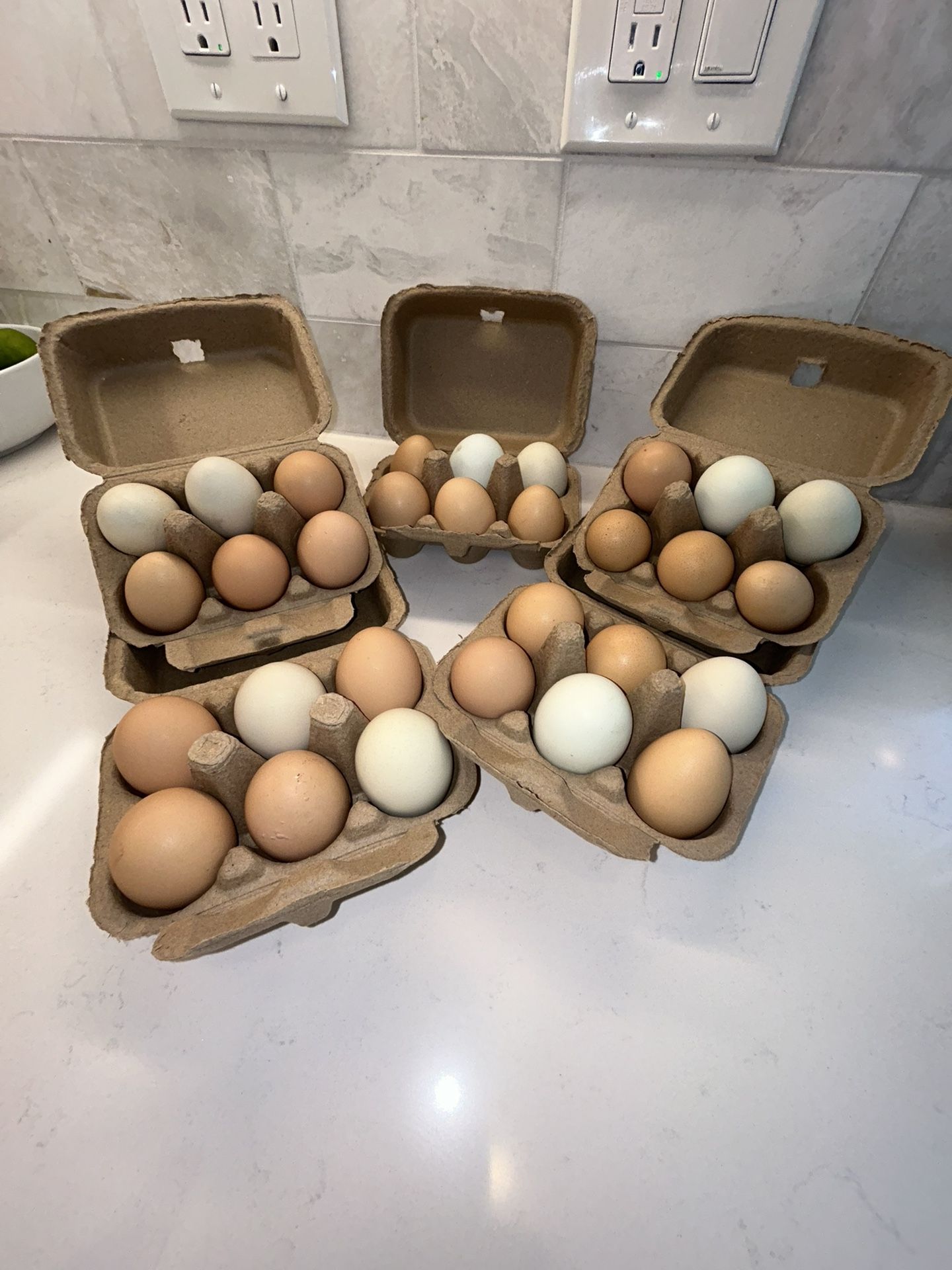 Delicious fresh eggs from my hens. Local in Oceanside next to Miracosta. Stop by and grab some!