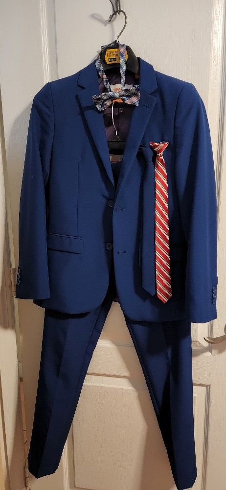 About this item Complete Formal Suit Set: NAVY ROYALE is 2-Piece Formal Suit Set includes 1 Suit Jacket , 1 pair of Dress Pants 1 Tie. Perfect for any special ocassions. The warm blue color makes it perfect for formal and non-formal events! The Suit fitting is Slim Fit. PERFECT FOR WEDDINGS: this suit is perfect for many occasions all year-round occasions such as a school party, a wedding, or any type of party where you want to stand out.