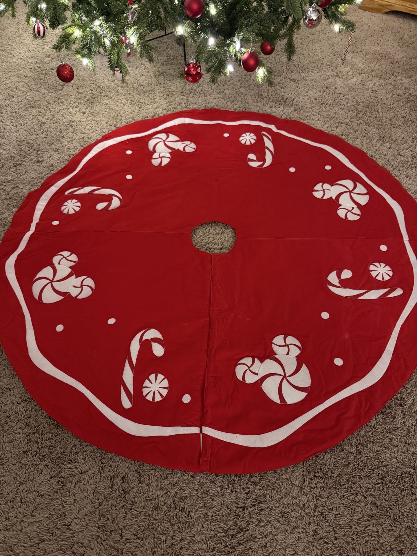 Red Velour Mickey Mouse Candy Cane Tree Skirt. In excellent condition. Porch pickup in Graham