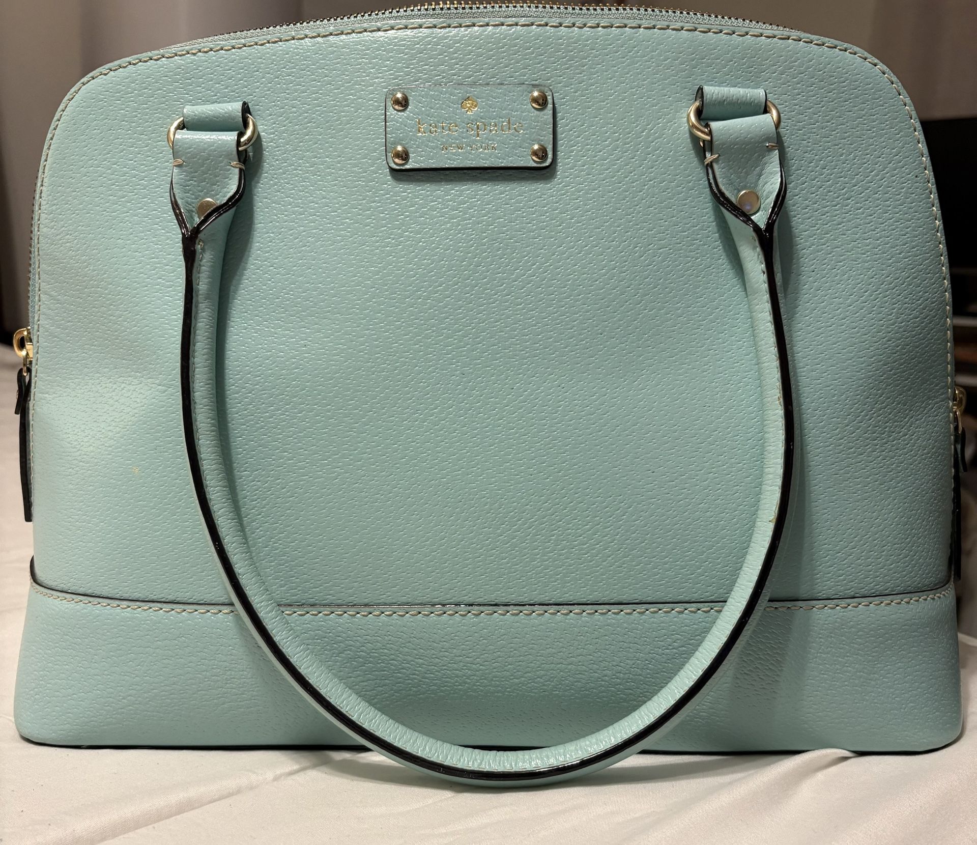 Chic Kate Spade satchel in robin’s egg. Features elegant handles and a structured design. Good condition inside and out.