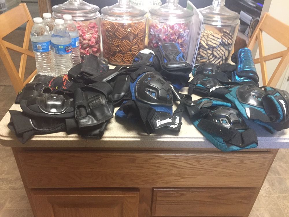 Several sets. Girls/boys soccer/skateboarding protective wear