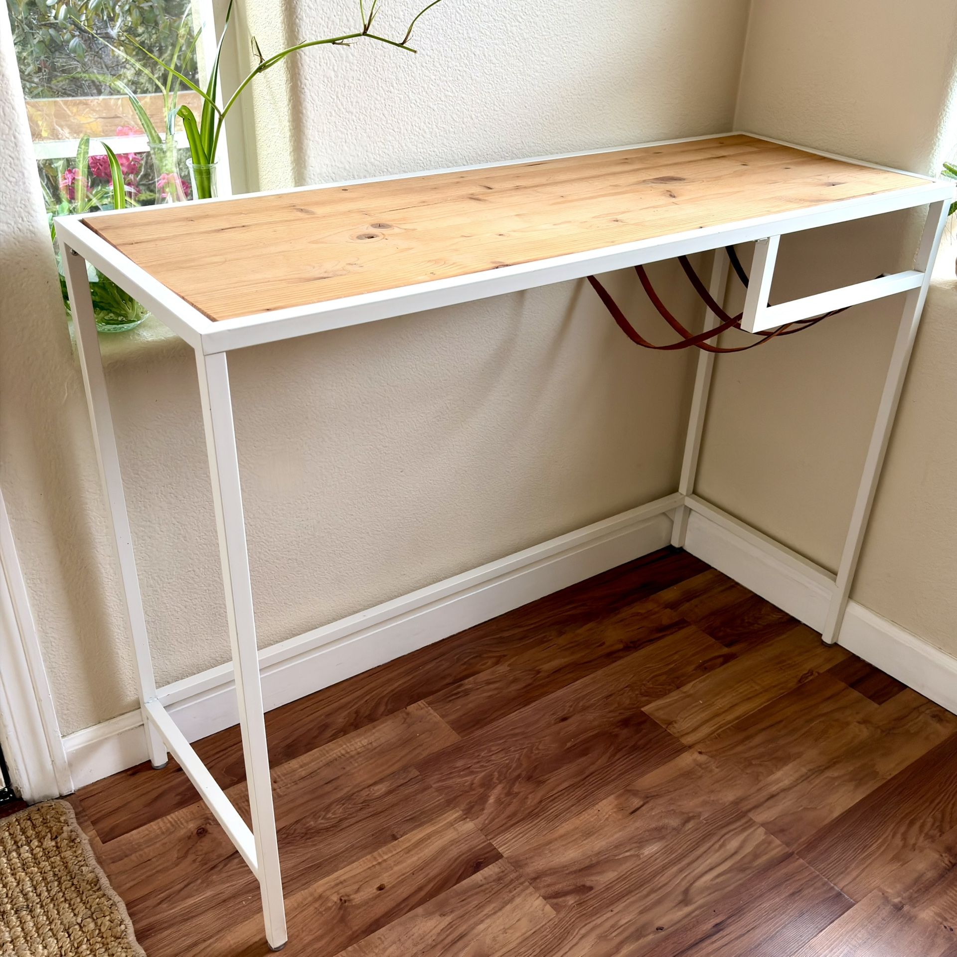 IKEA VITTSJÖ Wood & Glass Top Desk / Laptop Table Selling an IKEA VITTSJÖ desk with both a brand new glass top and a custom wood top. The shelf has been modified to hold more items. Perfect as a small desk, laptop table, or even an entryway table. ✅ Out of stock / no longer sold ✅ Delivery available ✅ Sturdy and stylish