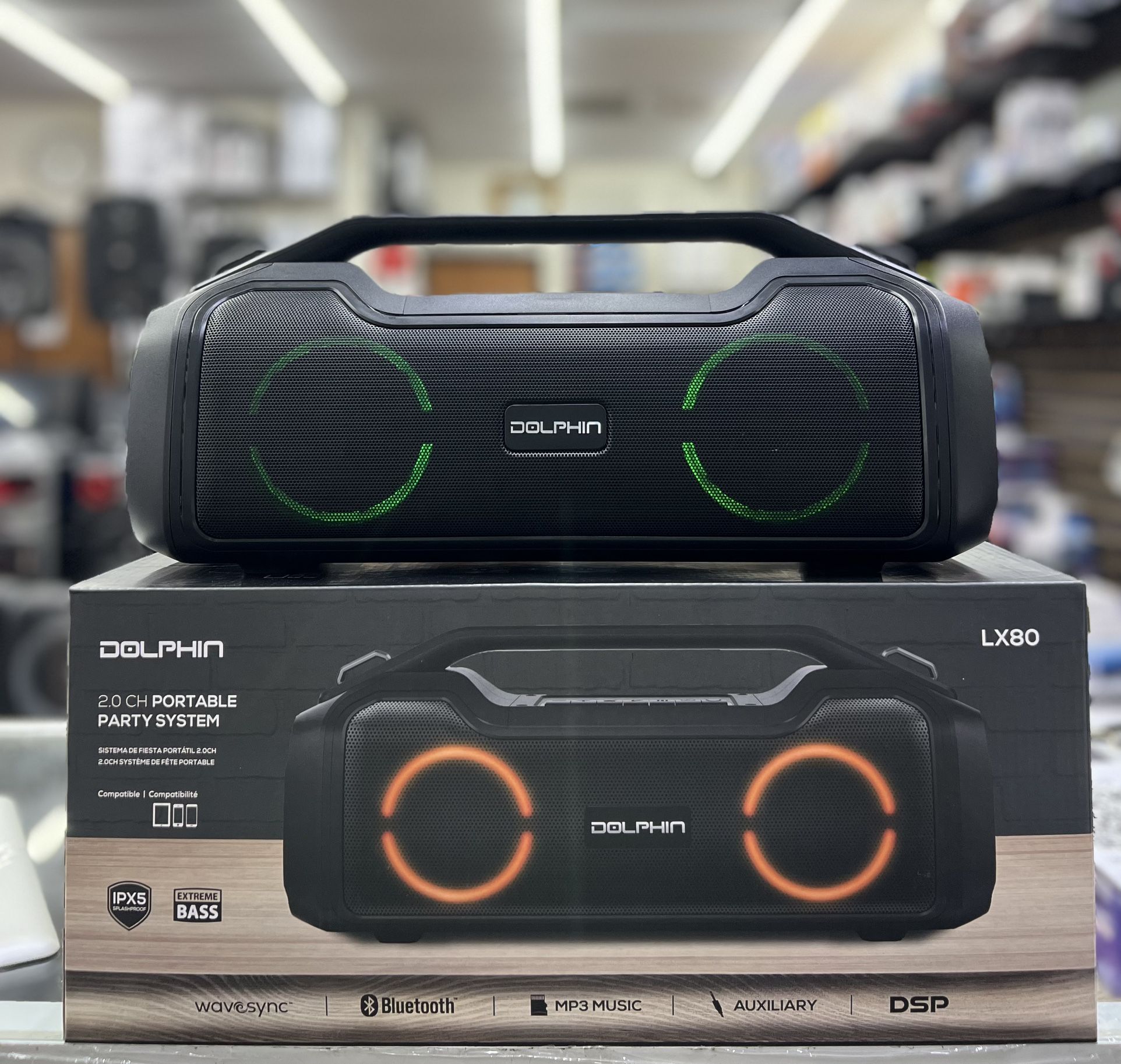 - 40 RMS Watts - IPX5 Splash proof - LED Battery Indicator - WaveSync™ Technology - Wirelessly pair two speakers and play music through Bluetooth. - USB-C Charge Cable - Dual 3.5" Woofers - Main channel- Bluetooth, Micro SD Card Mp3 Player - 3.5mm Auxiliary - Battery- 3600 mAH Lithium-ion - Multi color woofer lights