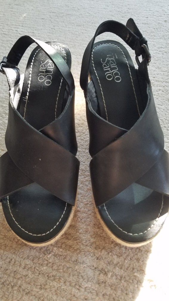 Womens Franco Sarto black Leather Wedge Sandal, Sz 8M