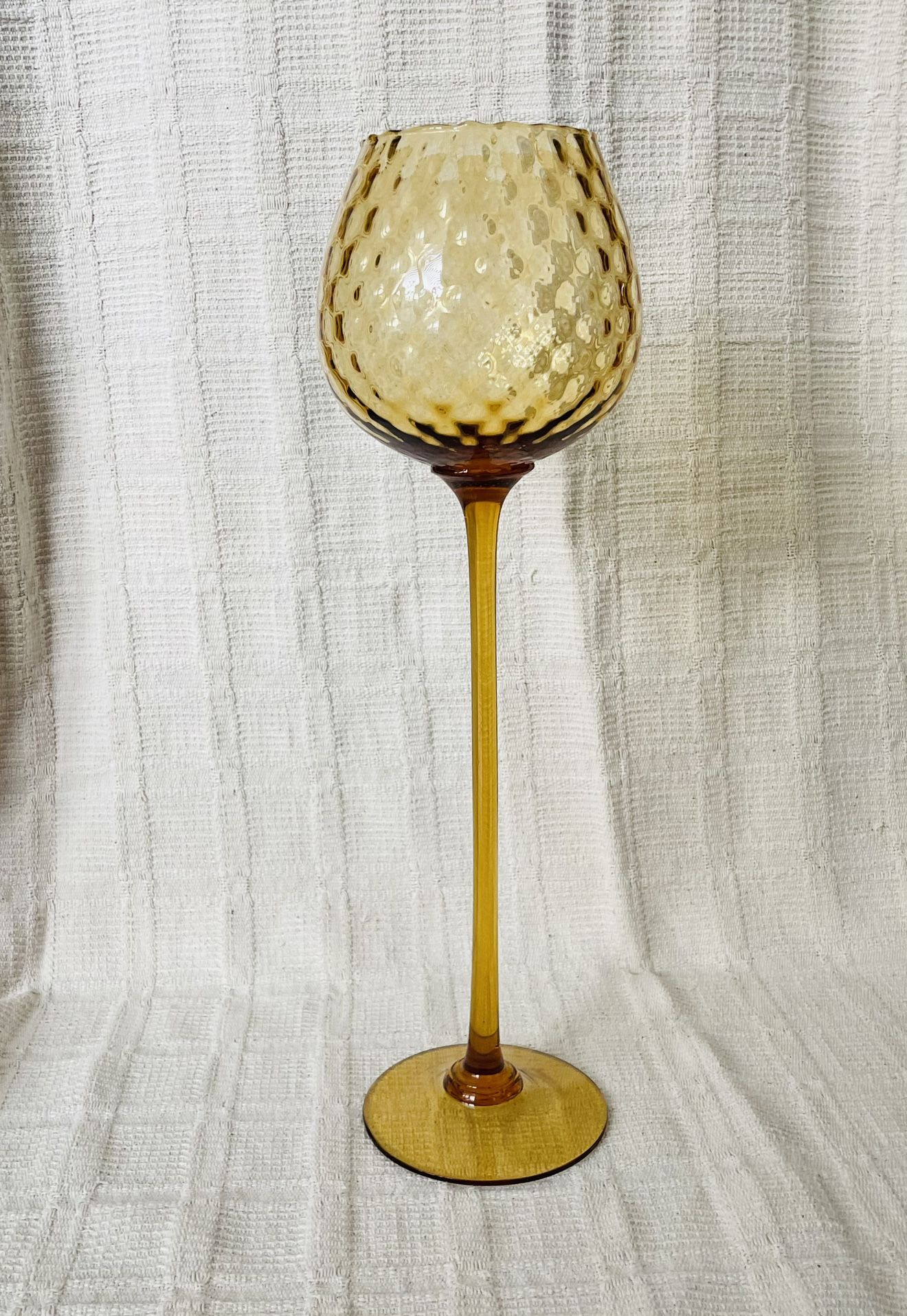 Empoli Diamond Quilt Amber Tall Stem Snifter Goblet Glasses Candle MCM Magnificent piece of vintage glassware - a 1950s Amber Glass Empoli Pedestal Bowl. Stands 19.25" making it a true statement piece. Rich amber color and intricate design that Empoli glassware is renowned for. The elegant pedestal base provides a stable foundation for the bowl, while the wide mouth offers ample space for displaying flowers, fruit, or other decorative items. The bold, yet refined design of this Empoli pedestal bowl makes it a versatile addition to any home decor style. It adds a touch of sophistication to a traditional setting, while also complementing more modern and eclectic styles.