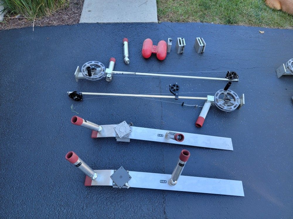 Used downriggers for fishing by Big Jon Inc. 4 in total, 2 bases and weights.