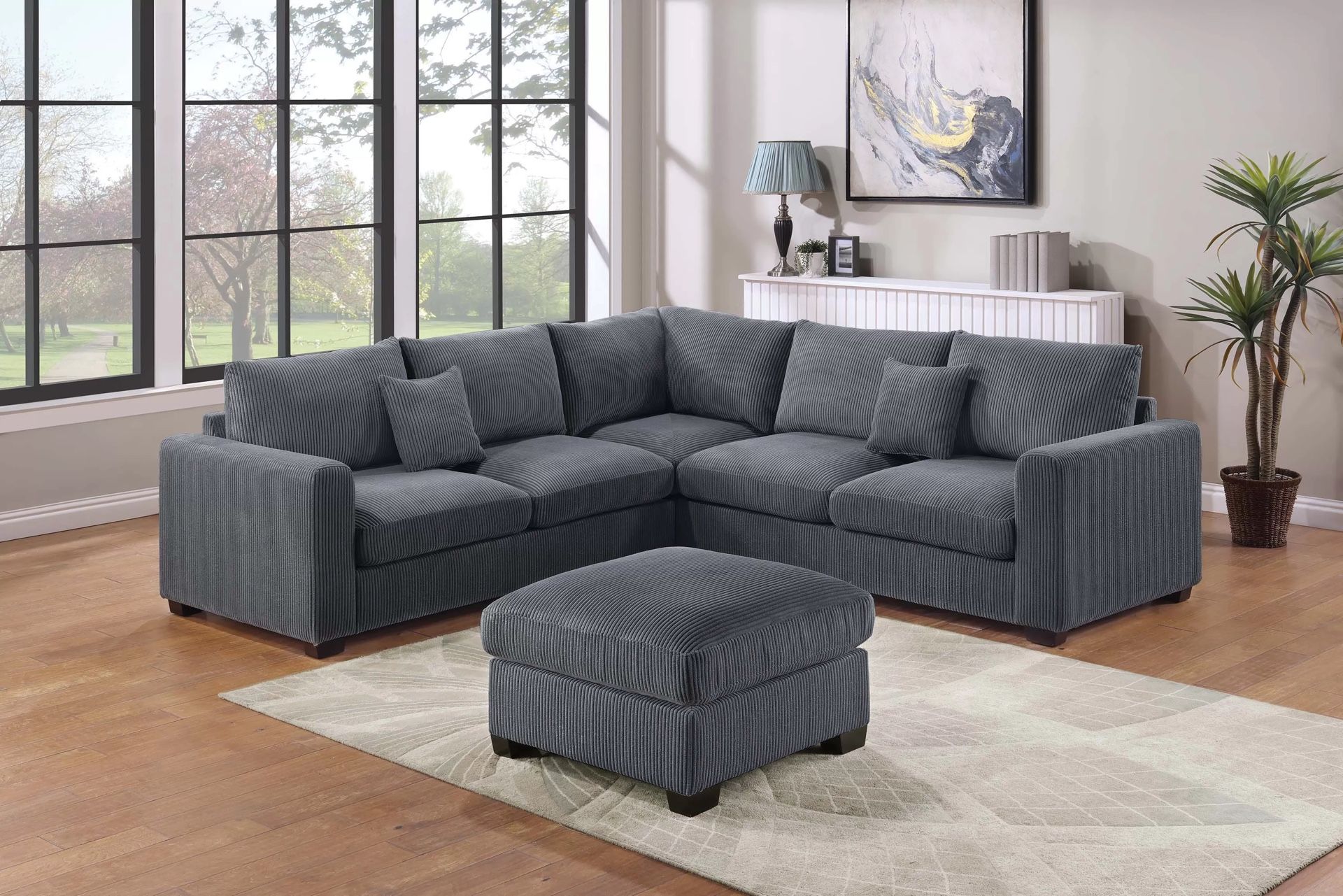 Dark Grey Sectional Sofa With Ottoman