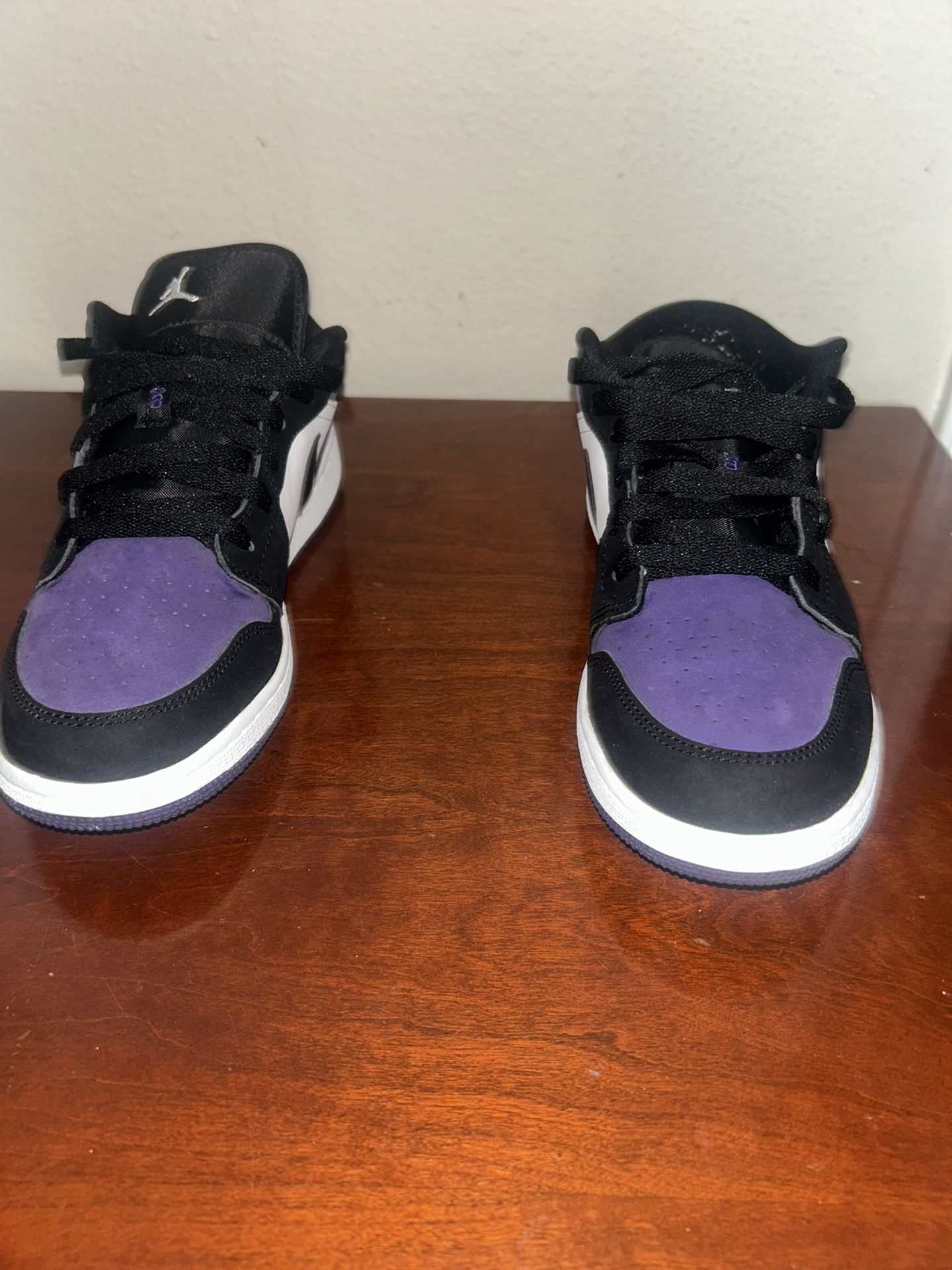 Air Jordan 1 Low White/ BlackCourt Purple Grade School Size 6Y Style 553560 125