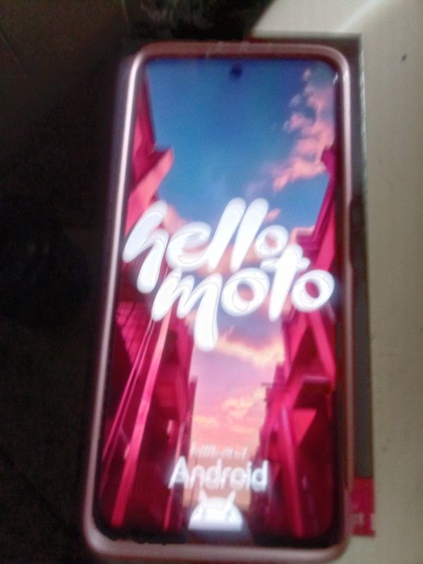 Motorola cell phone used but almost new but barely used pink with screensaver and internet and service $64 plan brand new