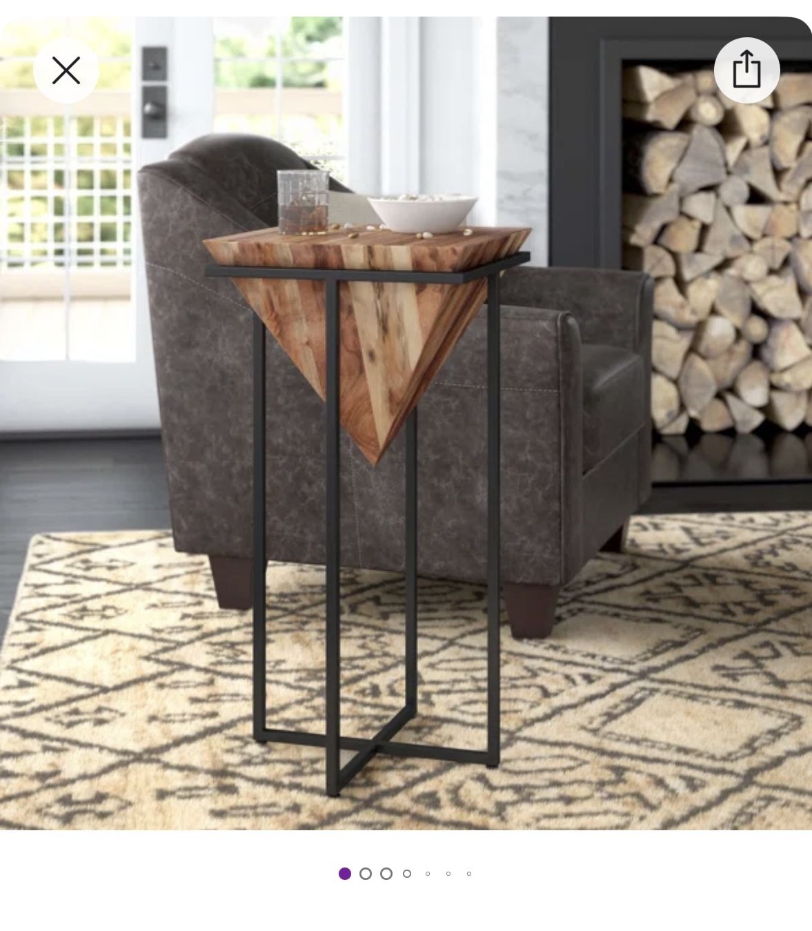 Cherine Pyramid Shape Acacia Wood Side Table With Cross Iron Base, Brown and Black
