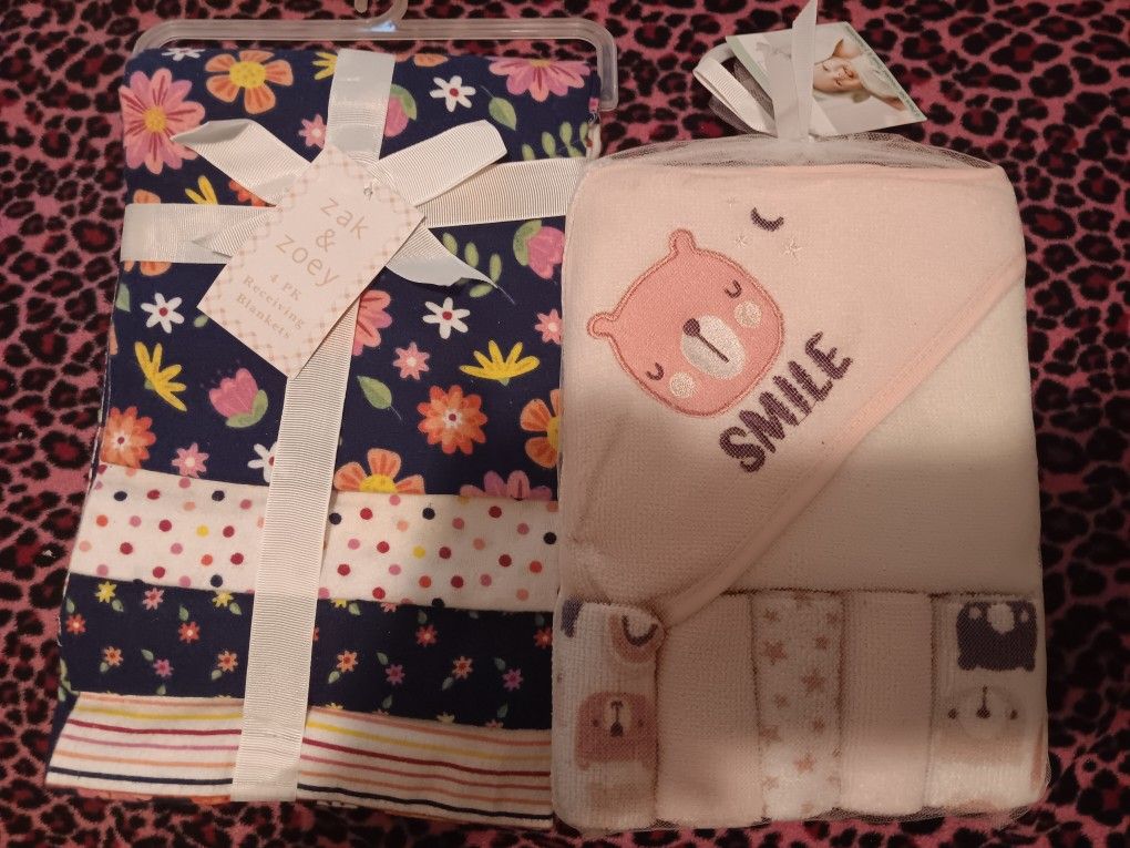 4pck reciving blankets And 1 towel and 5washcloth set Brand new nothing wrong just dont need so much . Take both for $10 or 5 each . Cash only pick in la puente only.