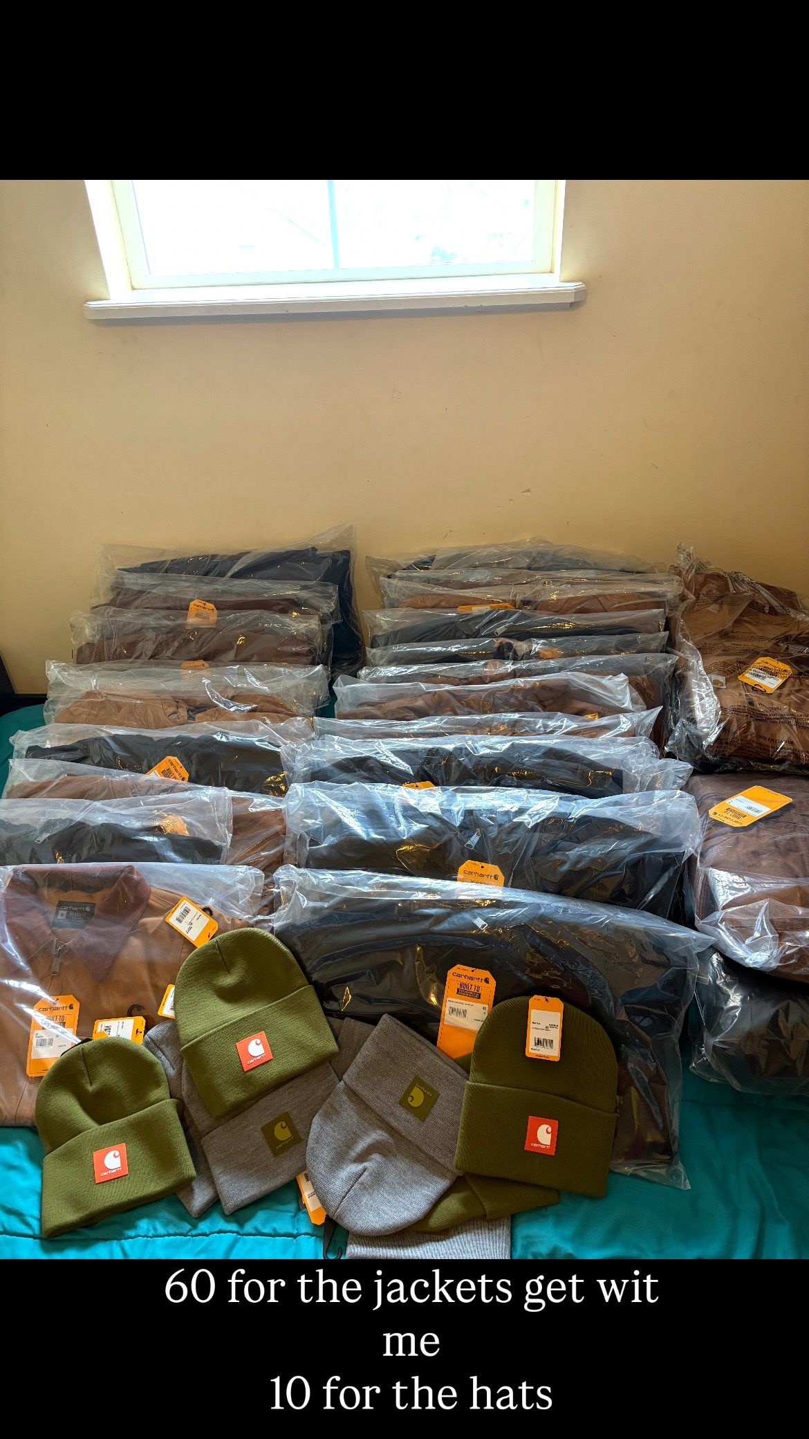 75 for jackets 15 for hats