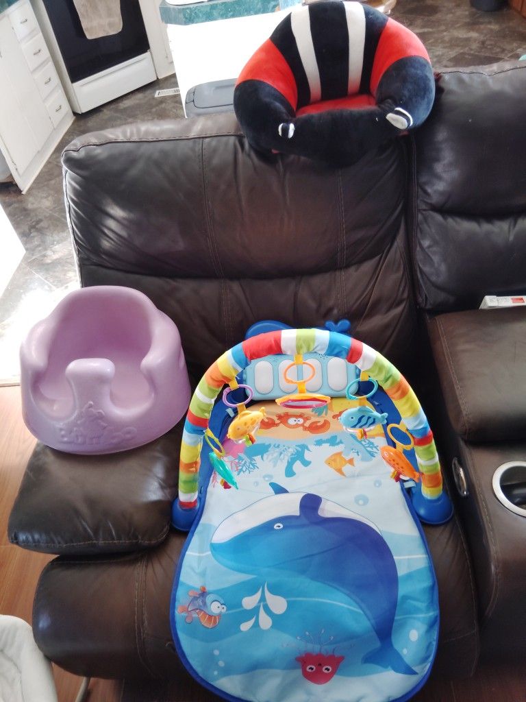 2 Bouncers A rocker Flat bouncer Bumba Play mat Lady bug pillow to help sit $50 for all