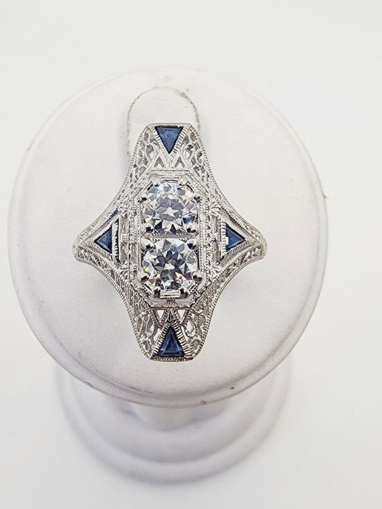 14k gold victorian style ring with 0.75ctw VS E old european cut lab diamonds