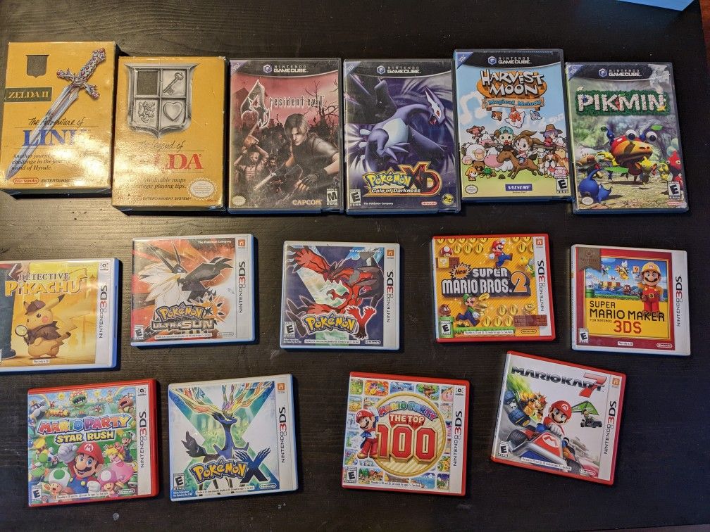Nintendo NES: Legend of Zelda cib Zelda II the adventures of Link Nintendo GameCube: Resident evil 4 Pokemon XD Gale of Darkness Harvest Moon magical melody Pikmin Nintendo 3DS: no longer available Detective Pikachu Pokemon ultra sun Pokemon Y Super Mario bros 2 Super Mario maker Mario party star rush Pokemon X Mario Party the top 100 Mario Kart 7 Selling as lot.