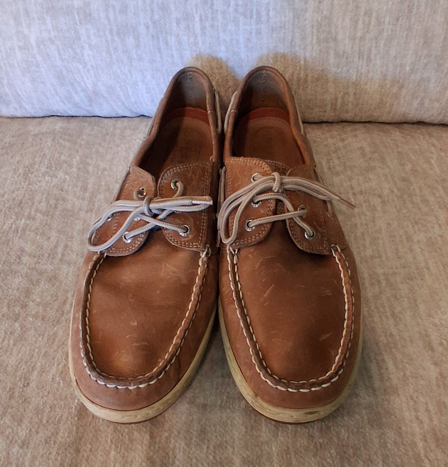 In excellent condition. Men's original and authentic Top Sider Billfish 3 eye boat shoes. Dark tan and beautiful leather. 0799320. Size 14W. Smoke free home and has a lot of life left. Insoles and bottom soles are excellent as well. Pick up in N Scottsdale near Pima and Pinnacle Peak.