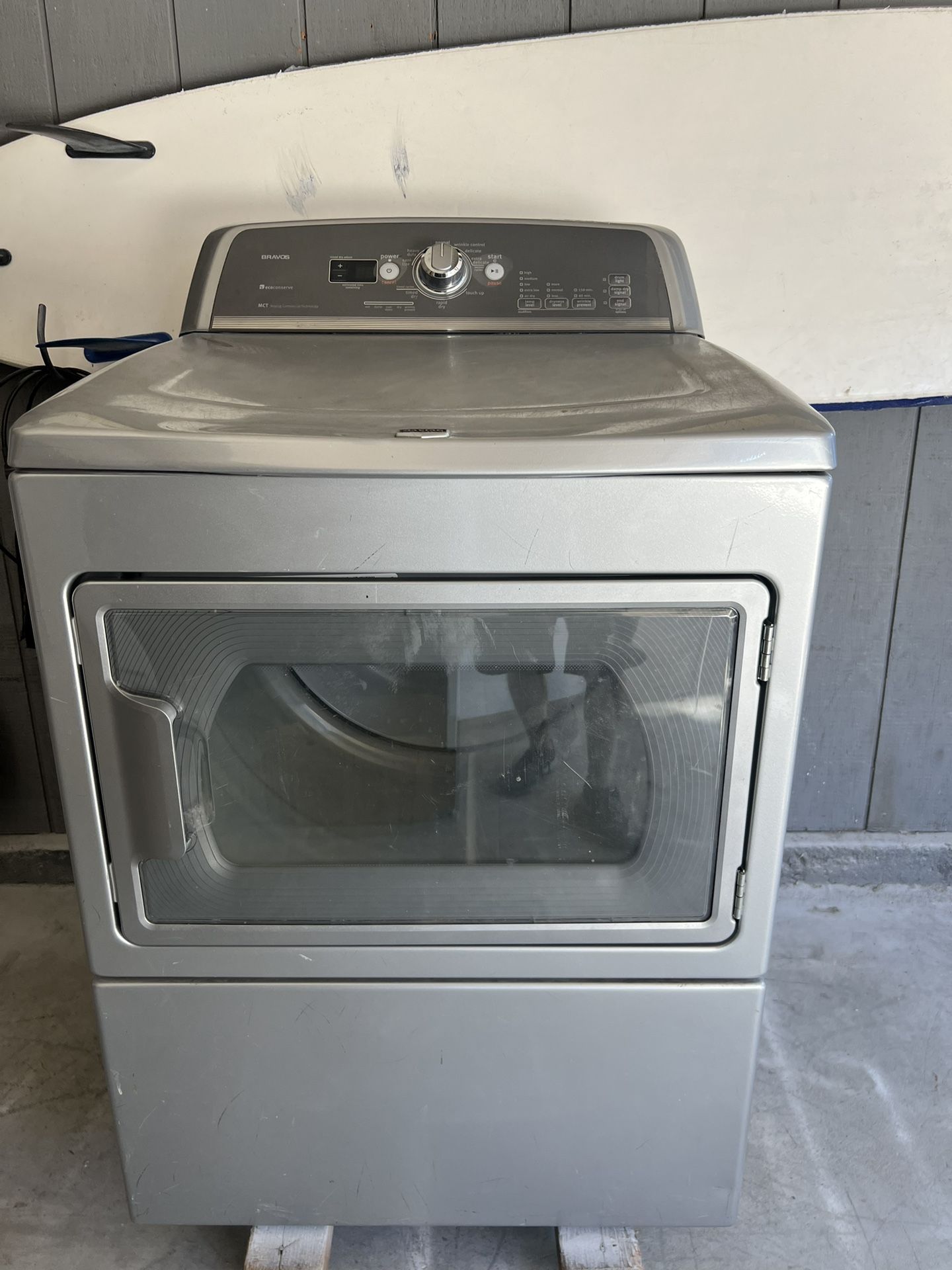 27 inches wide Delivery options available for a fee Gas Dries clothes great Very clean and ready to use now