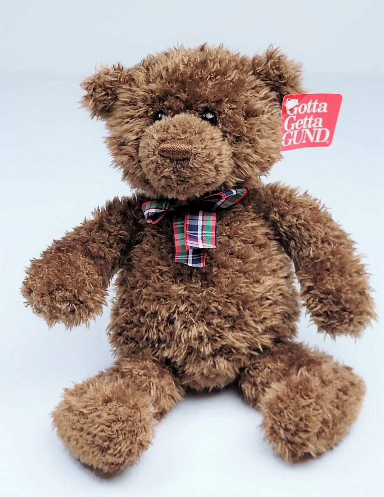 GUND Muffles #2482 Brown Teddy Bear with Plaid Bow Stuffed Animal Plush New 1999