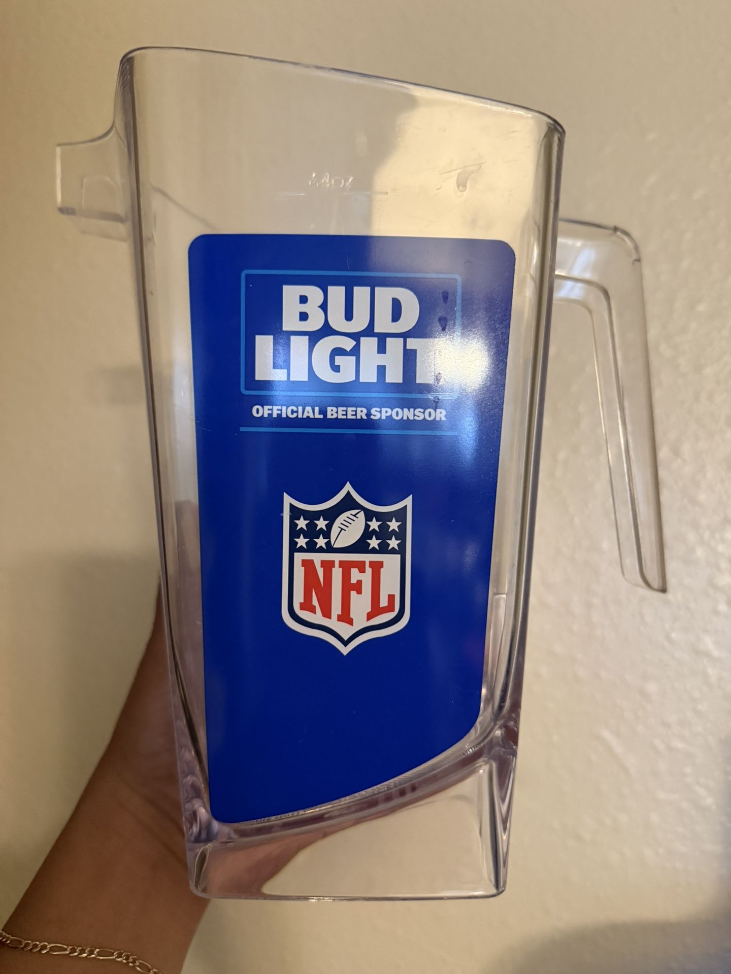 BUD LIGHT NFL 38 OZ. CLEAR PLASTIC PITCHER