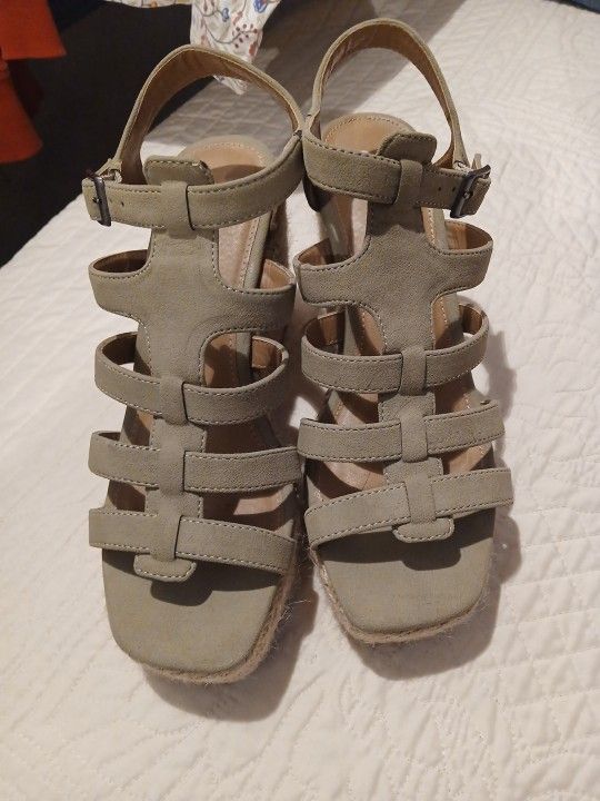 New Wedges 9M size Green Sage Jute(yute)all around Asking for $20 firm Cash only