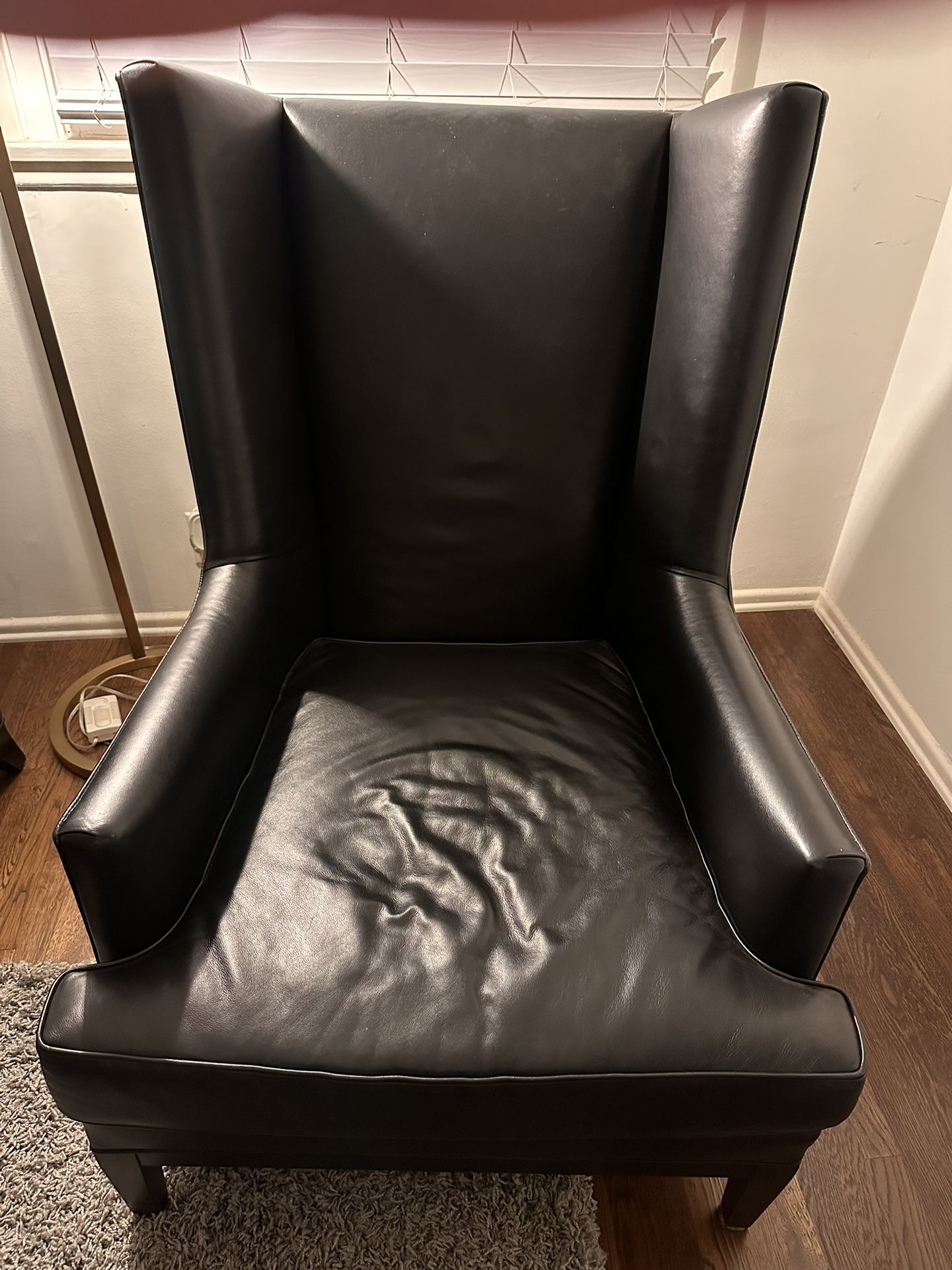 Leather Sofa Chair Genuine leather. Snakeskin on back. Don’t need it and nobody sits in it. Give this piece a good home!