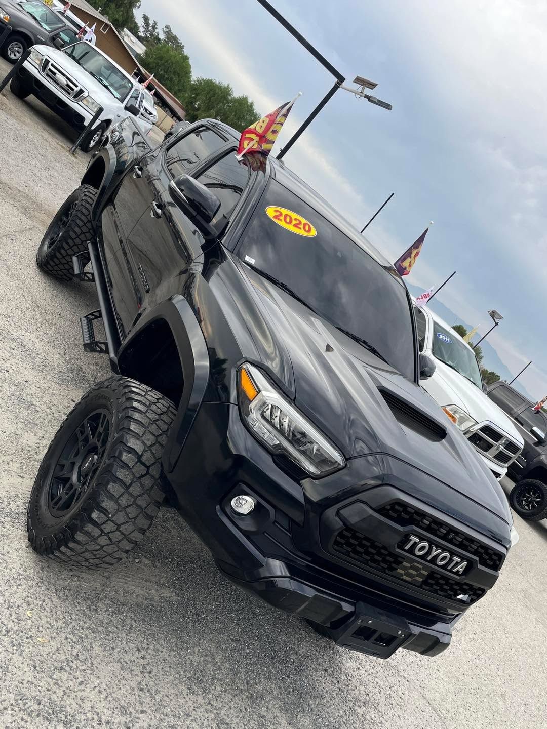 2020 TOYOTA TACOMA CREWCAB PRE RUNNER LIFTED AND ALL CUSTOM!!! Clean CARFAX and clean title , automatic transmission, power steering and brakes, power windows and door locks , cold air conditioning front and rear, aux and Bluetooth ready, custom suspension package, custom wheel and tires , custom front and rear bumpers, custom running boards, awesome sound system, power moonroof, Birds Eye view capability , beautiful plush black leather interior, and just 45k+ low low mileage and a powerful v6 gas saver for just $28977 plus tax , plus license, plus smog, plus doc fees if you pay green cash , no silly offers or credit union checks at all or bring 5000 down payment, make a payment plan with us, your great credit and great job history is important , some won’t qualify! Finance price is 2995 more than the cash price , plus add tax , plus license, plus smog, plus doc and financial fees!