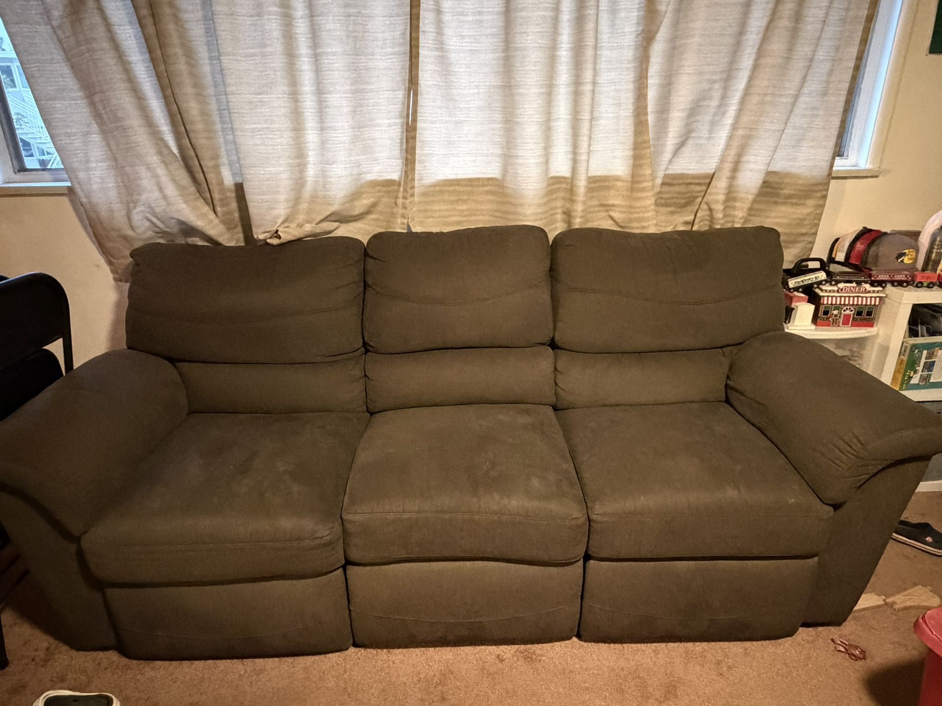 Selling my couch both seats recline and lay flat. Good condition. OPEN TO OFFERS