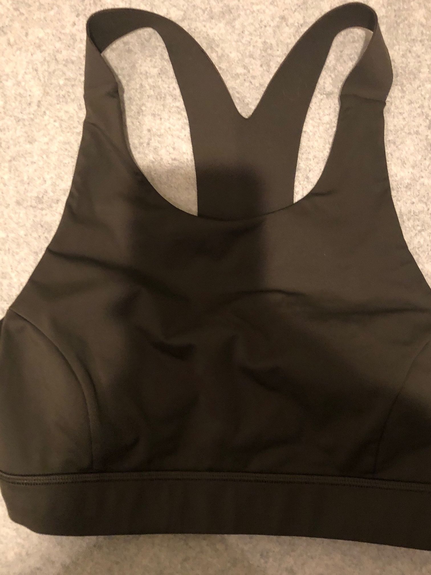 Lululemon high neck sports bra, size 8. padding inserts included. Olive color