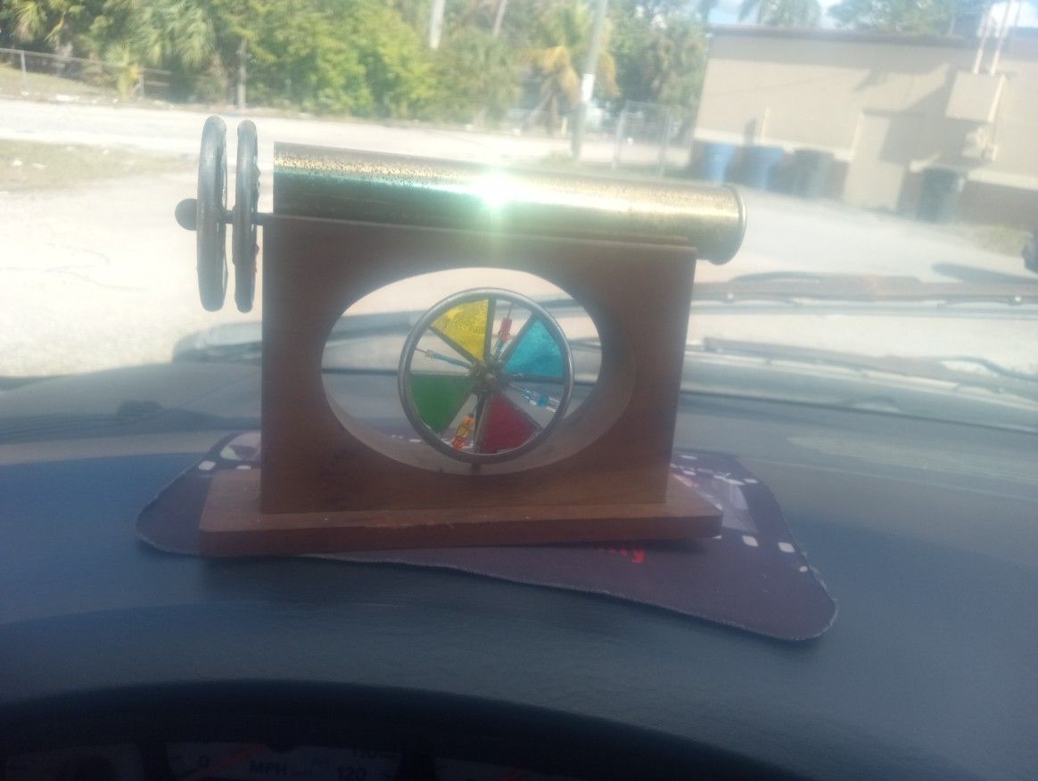In good used condition vintage wood an brass kaleidoscope by Sheryl Koch copyright 1998.