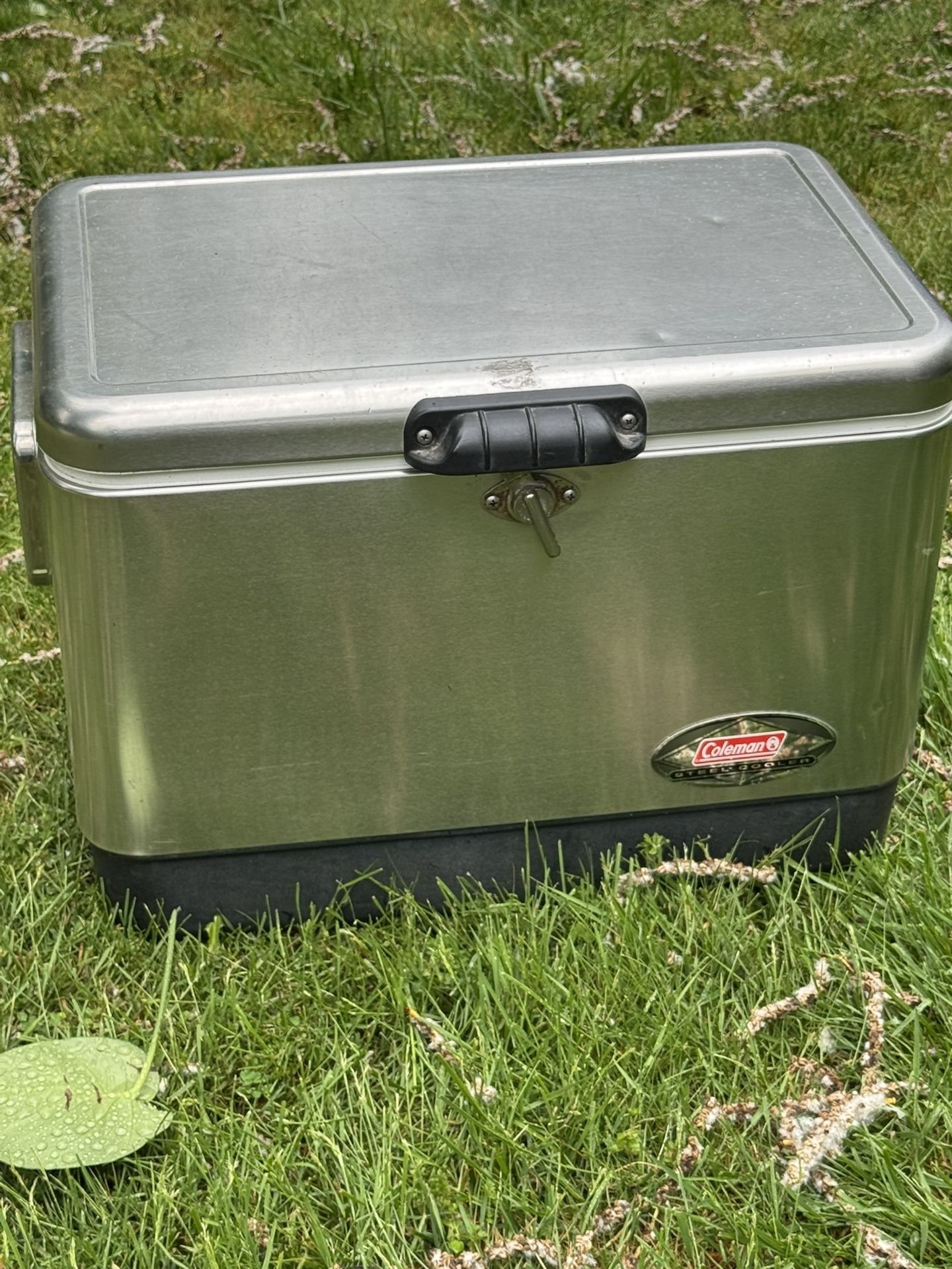 Vintage Coleman Stainless Steel Belted Cooler Ice Chest Model 6150 6155