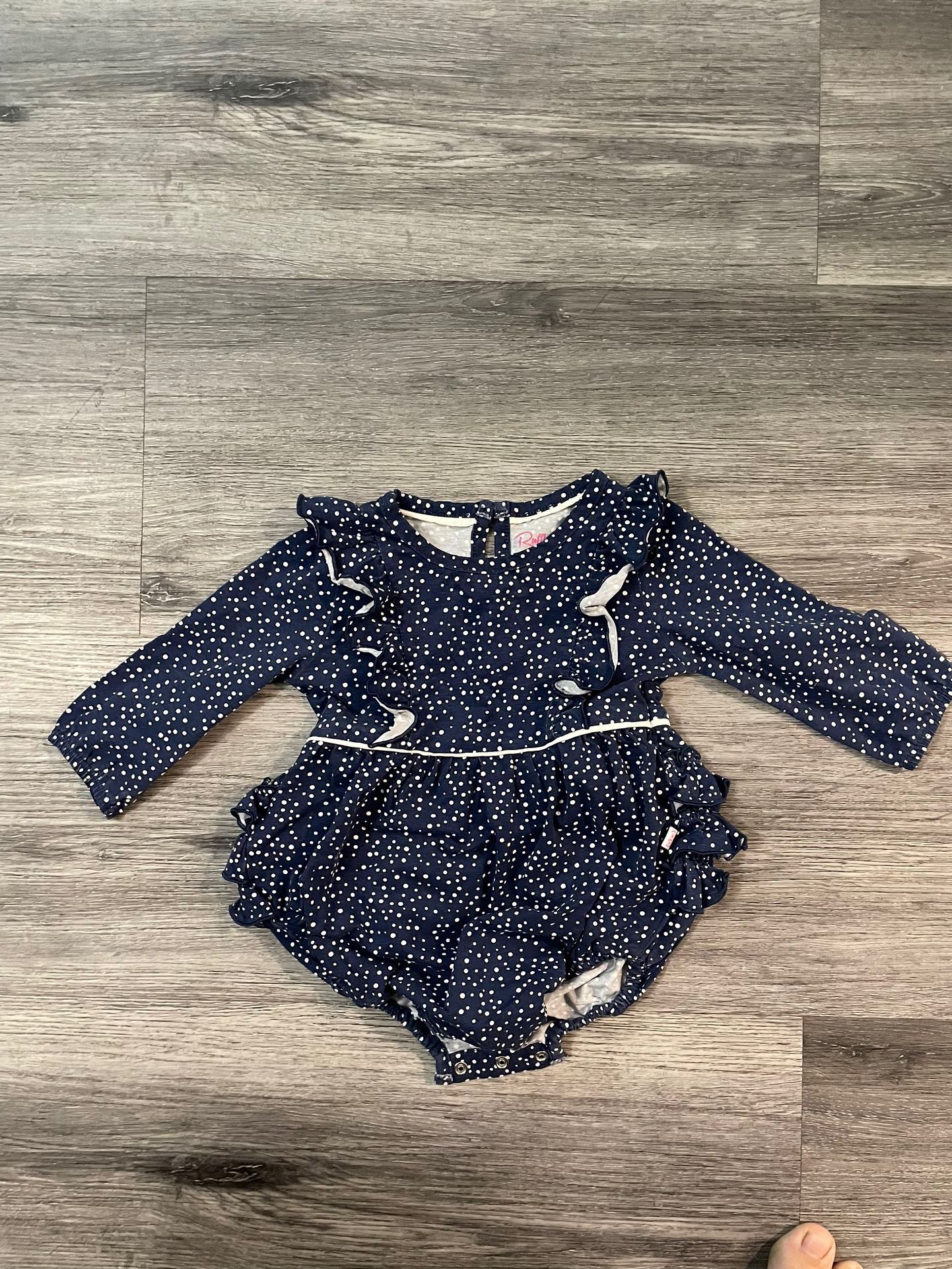 This is a very sweet polka dot onesie! In great condition, worn a handful of times. Size 12-18 months.