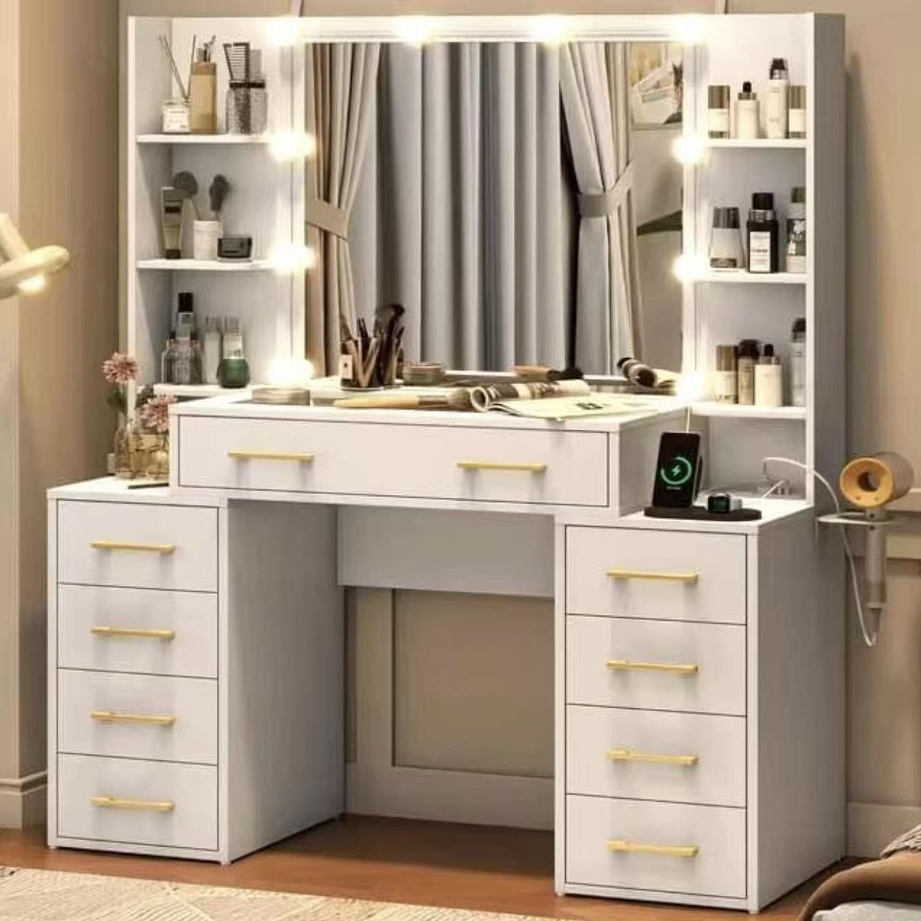 White makeup Vanity Desk with Mirror & LED Lights