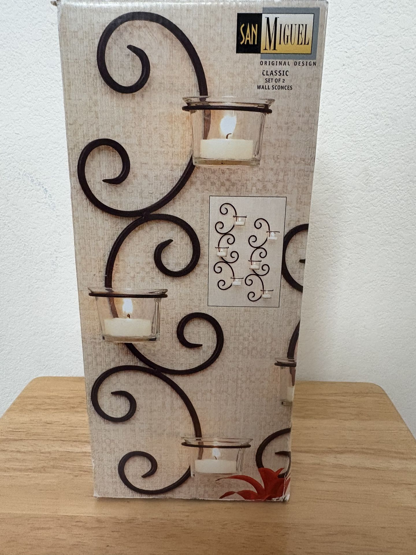 Beautiful set of 2 wall candle stones. Mission style. Brand new in box . $15