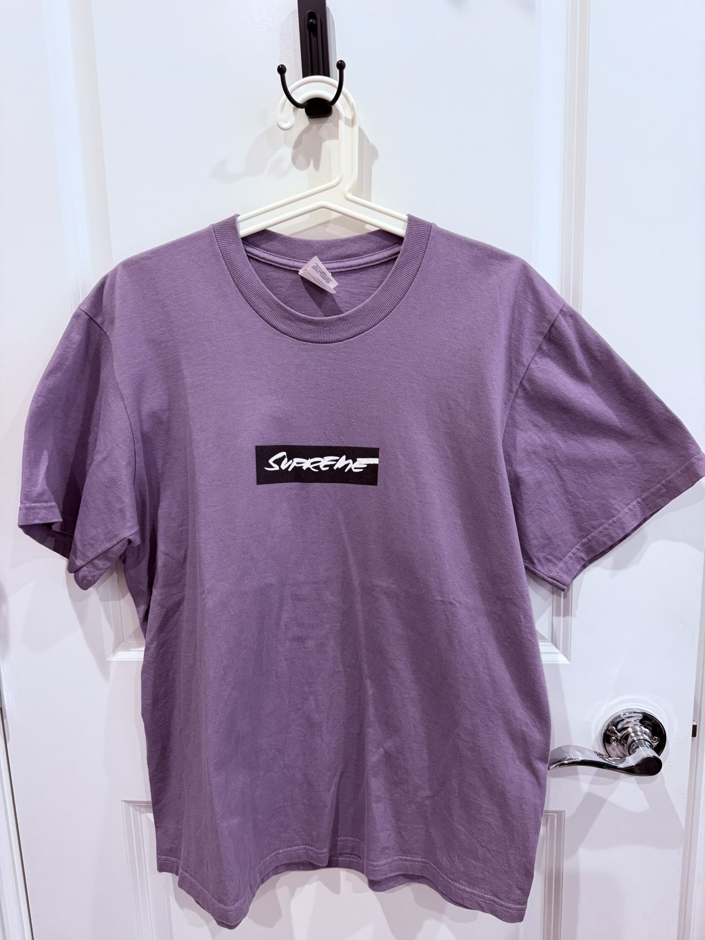 The Supreme Logo Tee in size M is a stylish and versatile addition to any man's wardrobe. Made from comfortable cotton material, this purple T-shirt features a solid pattern with a crew neck and short sleeves, making it ideal for the summer season. The limited edition design with the Supreme logo adds a trendy and sporty touch, perfect for casual wear. Easy to care for with machine washable instructions, this tee is a must-have for any fashion-forward man looking to elevate their style. No exchange or return
