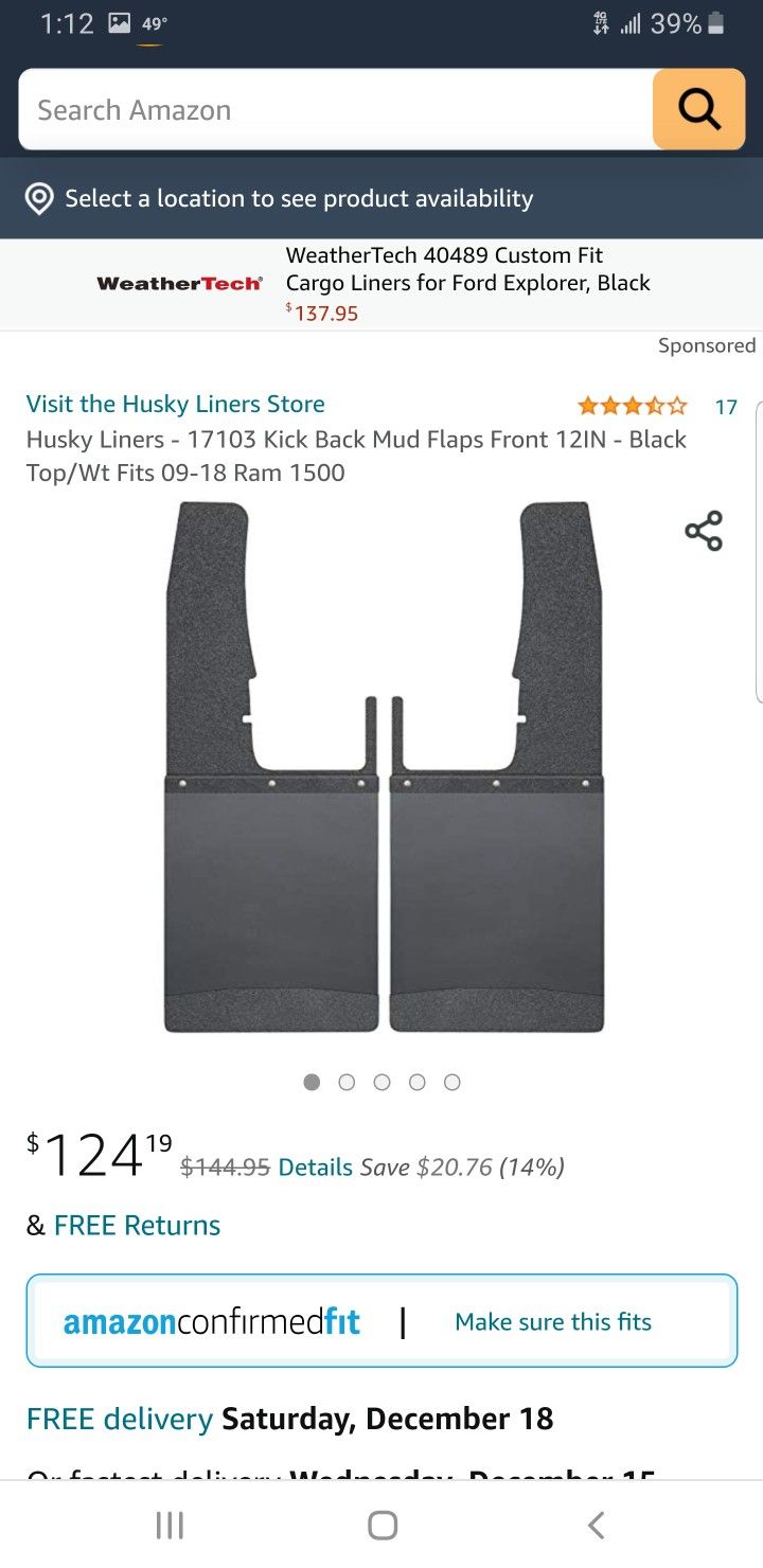 Husky Liners - 17103 Kick Back Mud Flaps Front 12IN - Black Top/Wt Fits 09-18 Ram 1500
