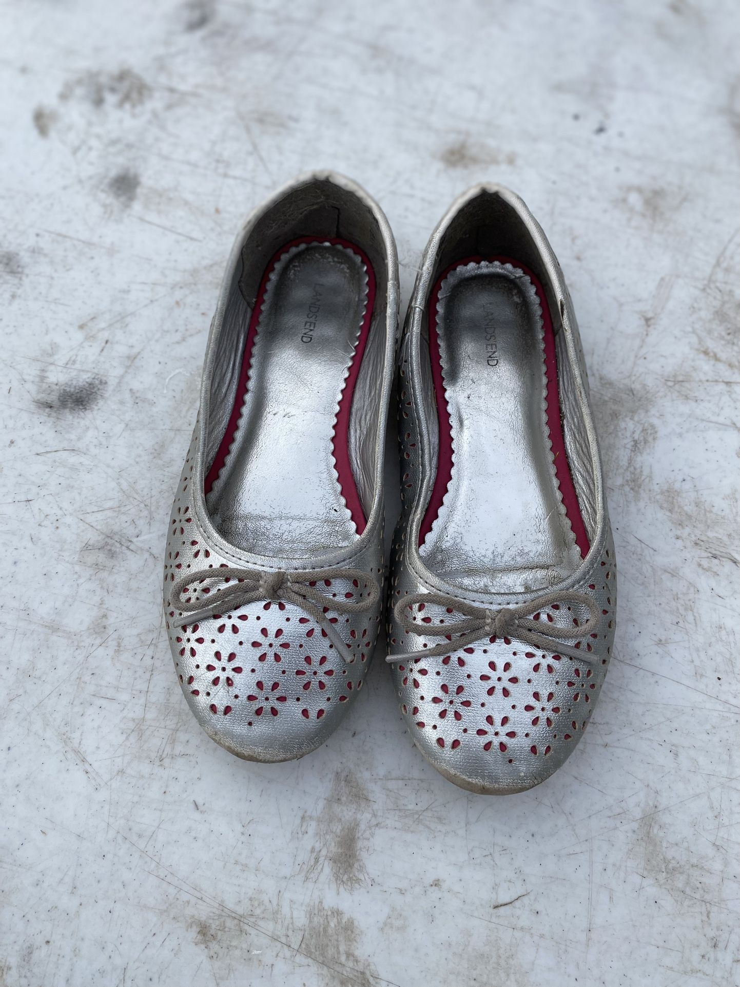 Silver LandsEnd Ballet Flats Cut-out Design Kids Sz 2M