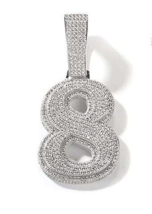 Iced Out "8" Big Number Pendant Necklace, Bling, Micro Paved CZ Diamond Jewelry For Him. Lucky Number 8. I only have the number "8" COMES WITH THE CHAIN