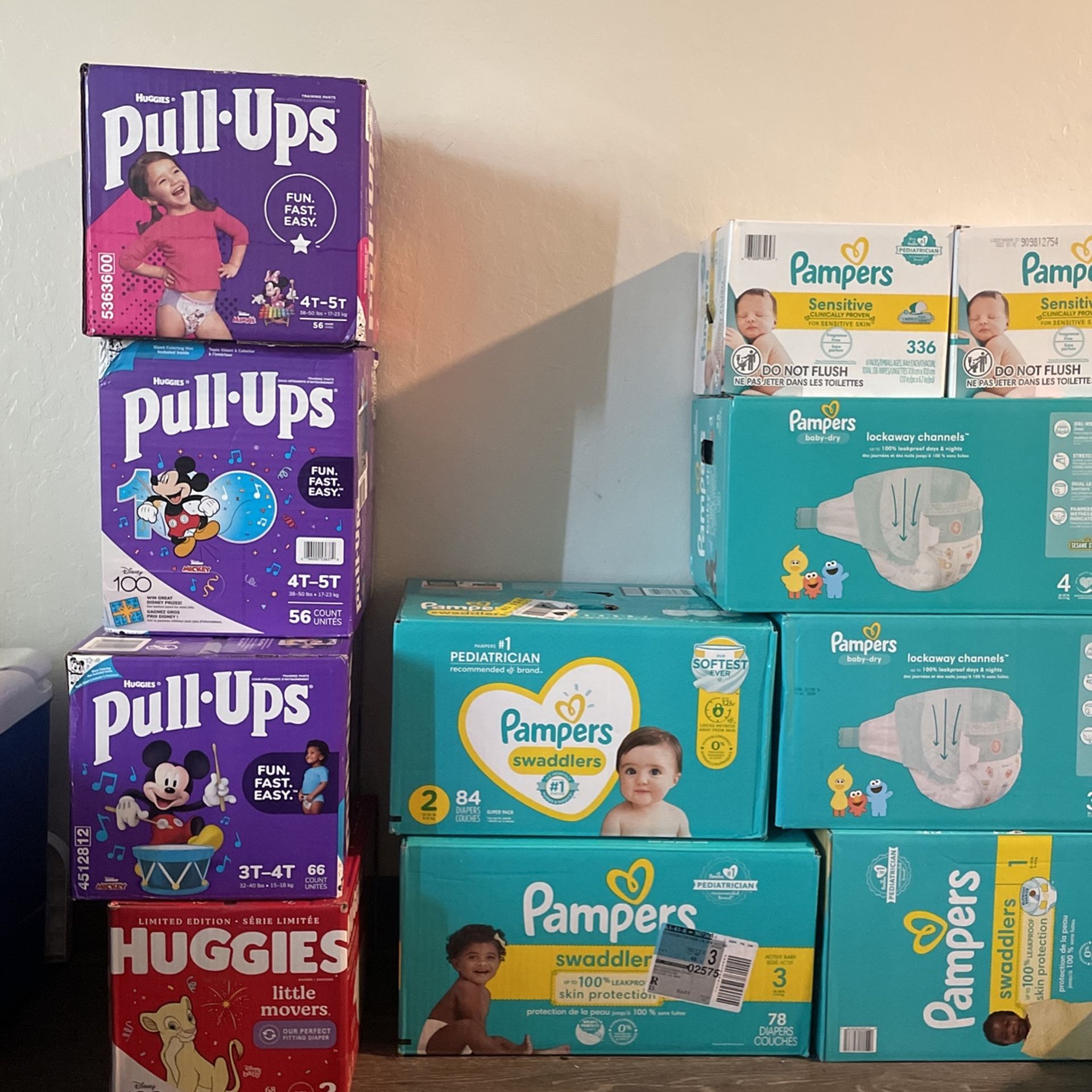 Ask me for the size I will let you know if it still available. all brand new Boxes of diapers