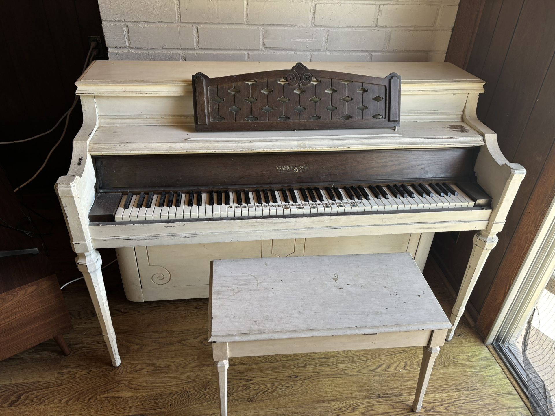 Free Shabby Chic Piano with bench. Needs tuning. Bring help for loading (sorry bad back).