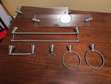 MOEN Banbury Bathroom Set - Two towel rings, two shelves, double towel bar, double towel hook, toilet paper holder. $250 value. Smoke free home