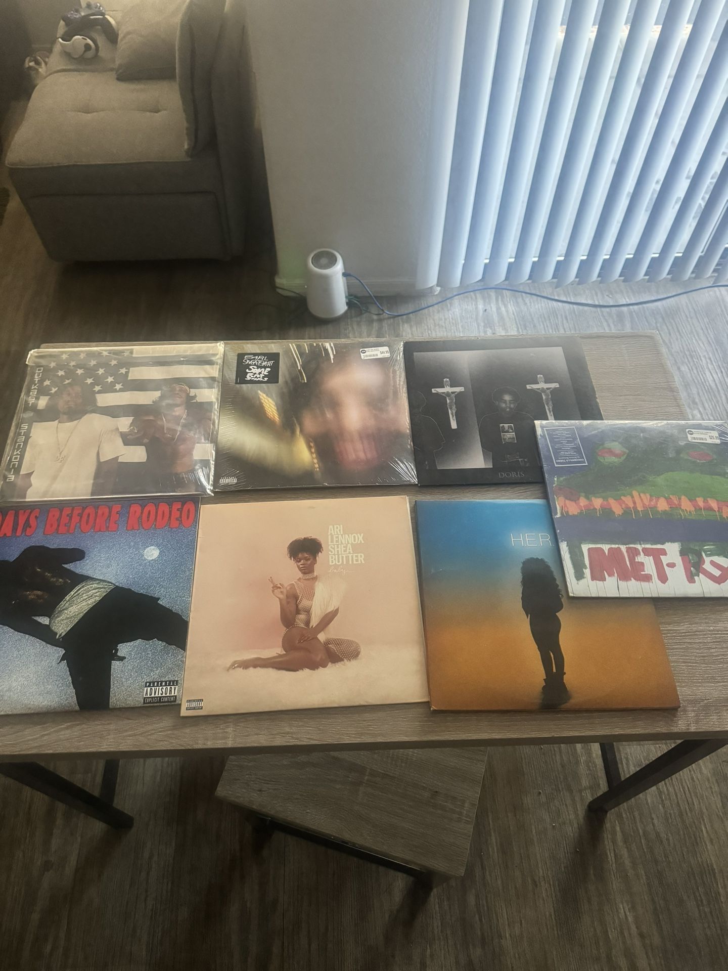 OutKast- stankonia brand new $45 or best offer Earl sweatshirt- Some rap songs brand new $45 or best offer Earl sweatshirt- Idlsigo $20 or best offer Travis Scott- Days before rodeo $100 or best offer Ari Lennox- Shea butter baby $25 or best offer Her- her $20 or best offer Action Bronson- cocodrillo Turbo $30 or best offer $250 for all or best offer
